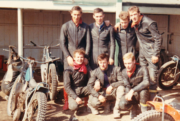 ![]() På våren 1967 gjorde laget en träningsturné i England. Här ovan syns stående: Bengt Brannefors, Bosse Magnusson, Kent Carlsson och Uno Olsson; knästående: Dick Svensson, Karl-Erik Andersson och Claes Löfström. |