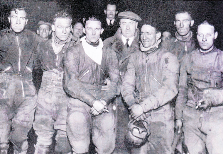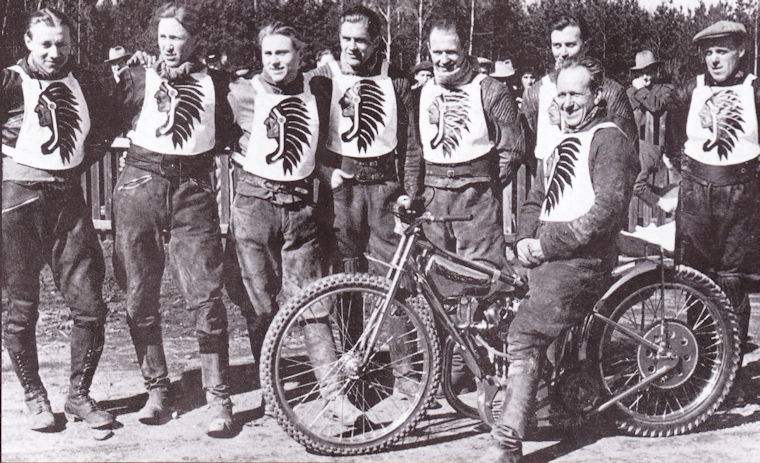 New Cross Lambs från 1934; Från vänster: nobby Key, Tom Farndon, Ron Johnson, Fred Mockford (manager och promotor), Harry Shepherd, Sten Greatrix och Roy Dook