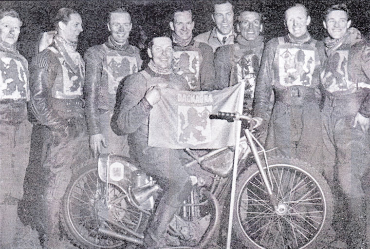 Dackarnas lag från 1951; Från vänster: Rune Vikgren, Bengt "Dack-Bengt" Nilsson, Lars-Erik Österberg, Hans Engborg (på cykeln), Lars Thaung, Gunnar Engborg (lagledare), Bengt Gustavsson, Sten Johansson och Rune Sörmander.