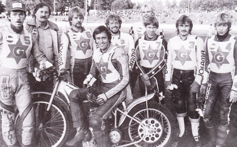 Från vänster: Richard Hellsén, Tommy Jacobsson (lagledare), P-O Gudmundsson, Anders Michanek, Jimmie Magnusson, Thomas Hydling, Jimmy Nilsen, Tommy Nilsson och Per Jonsson.